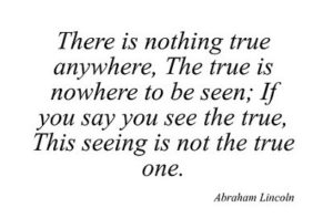 adevarul e ca nu putem fi absolut siguri de ceva, niciodata. adevarul complet si perfect nu e niciodata in mana noastra. orice lucru bun sau rau ni s-ar intampla la un moment dat, nu il putem privi 100% obiectiv, pentru ca in mod clar il privim din punctul nostru de vedere. problema este ca, desi e greu de admis, intodeauna adevarul este diferit de ceea ce vedem sau simtim noi.